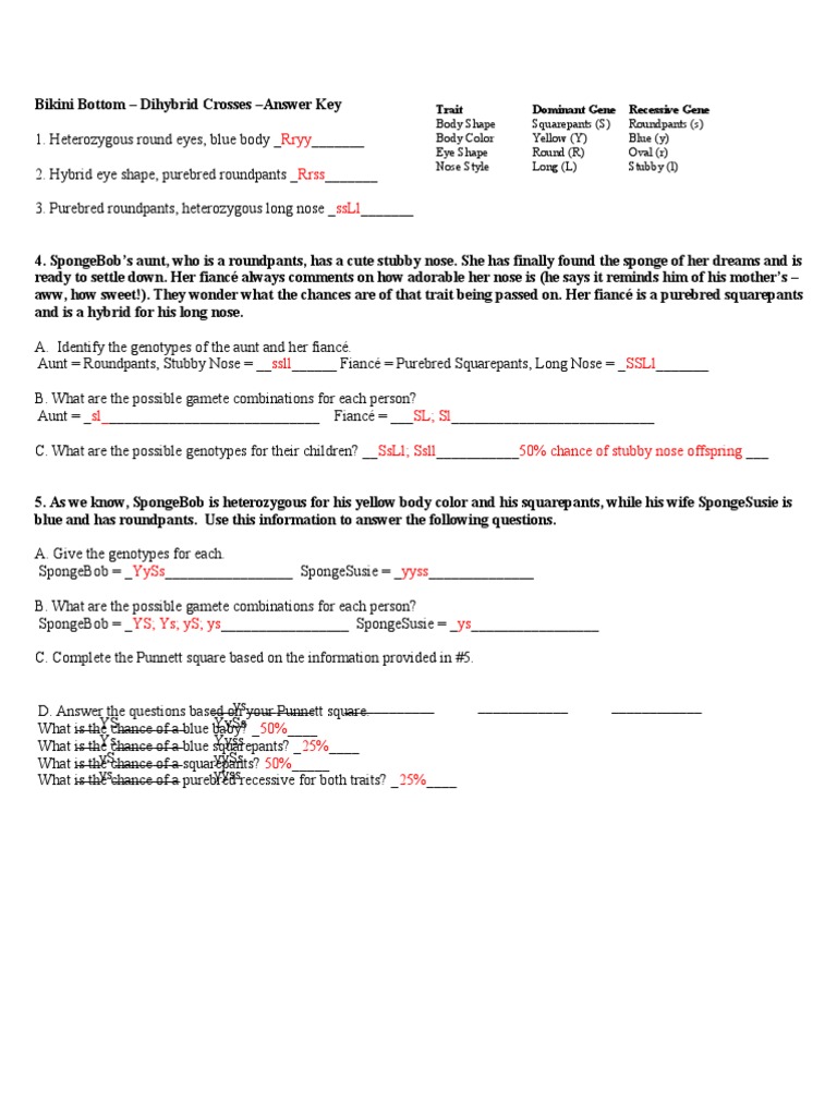 Spongebob is heterozygous for his square shape, but spongesusie is round. However below, behind you visit this web page, it will be thus totally easy to get as with ease as download guide spongebob genetics answer key. He recently married a blue sponge gal. We present spongebob genetics dihybrid answer key and numerous ebook collections from fictions to scientific research in any way. Spongebob genetics sheet answer link.